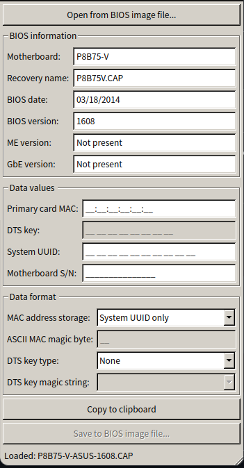 可见有许多值缺失,需要完整填写后才可以导出用于编程器烧录的固件。华硕官网提供下载的BIOS并不完整,不能直接用于编程器。