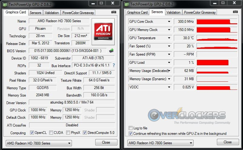 更新:HD7850 在macOS 12.7.6 中,只有在50/60Hz刷新率时,显存频率才能在闲置时回落到150MHz,其余分辨率下均锁死1200MHz。具体功率无法查看,用之前的命令可以正常列出核心频率、显存频率、显卡温度以及风扇转速,但是功率始终为零,估计是显卡自身没有功率传感器吧。翻了下网上的GPU-Z截图:
